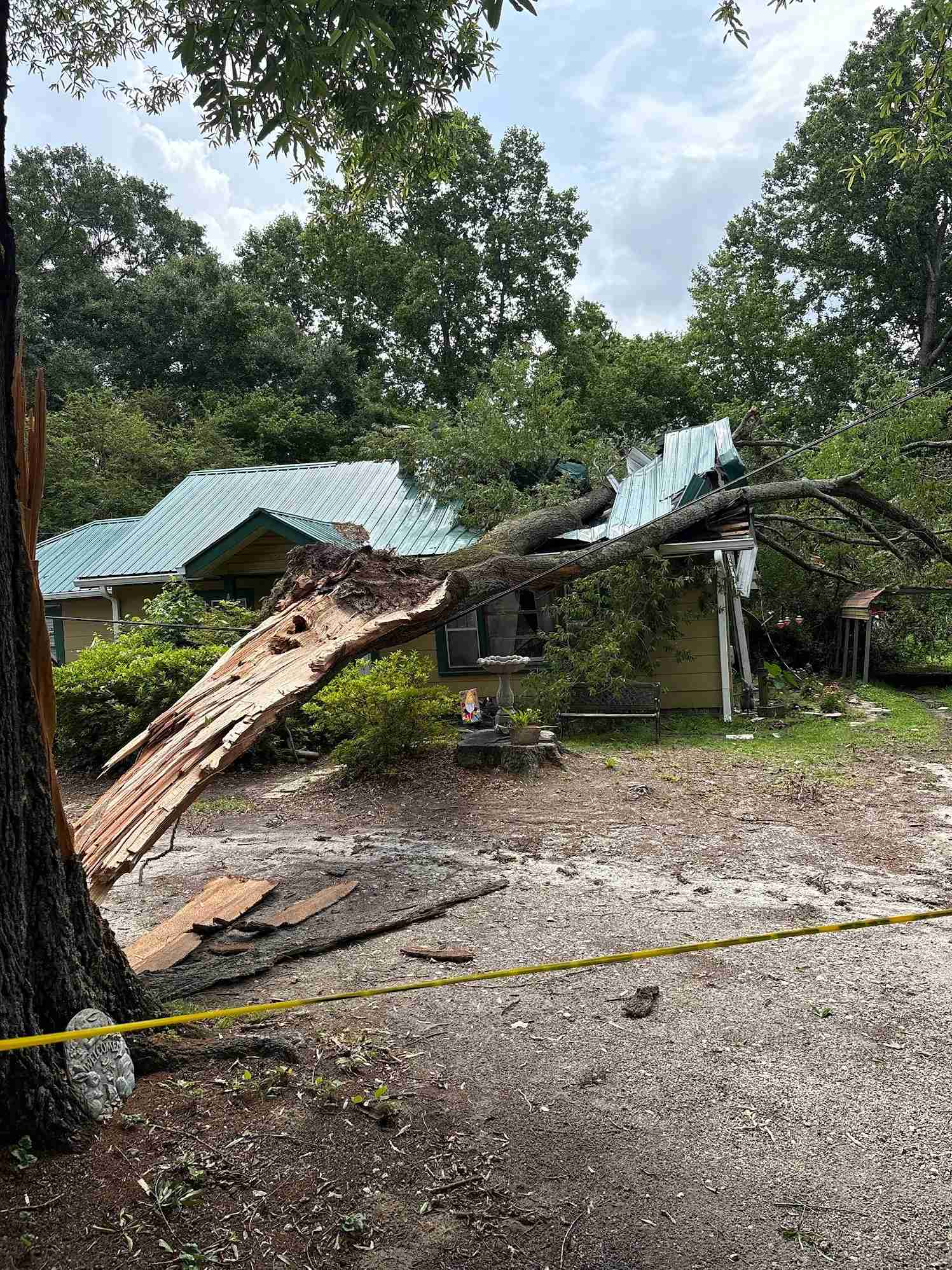- Secure and remove a large fallen tree from a house